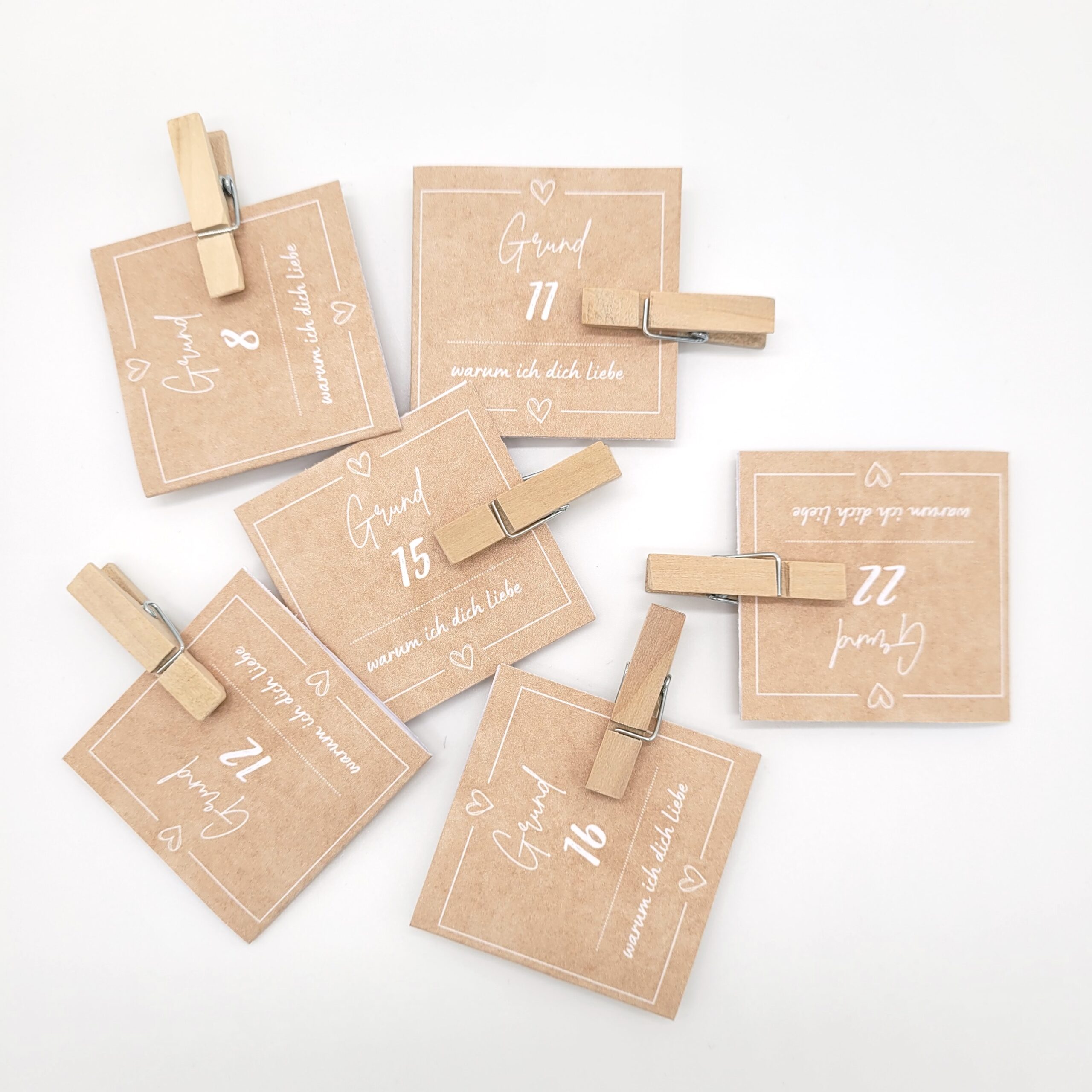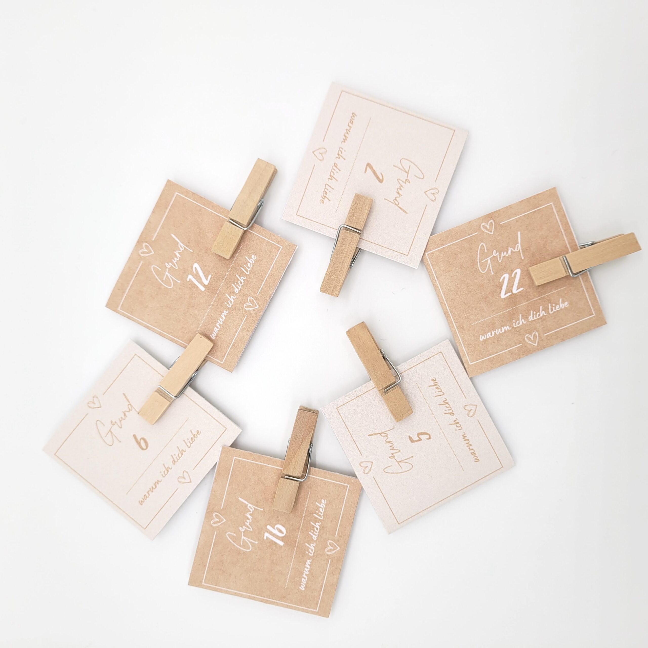 Inhalt: 24 Kärtchen in hübschem Design (je nach Variante inkl. 24 Wäscheklammern)
