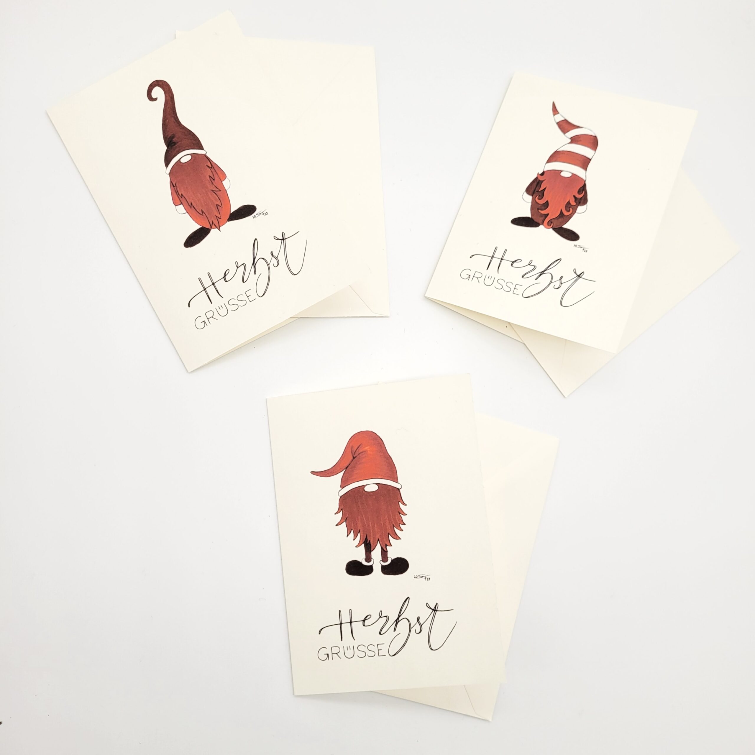 – 3er Set Grußkarten „Herbst-Wichtel“ (1x jedes Motiv) inkl. Briefumschläge