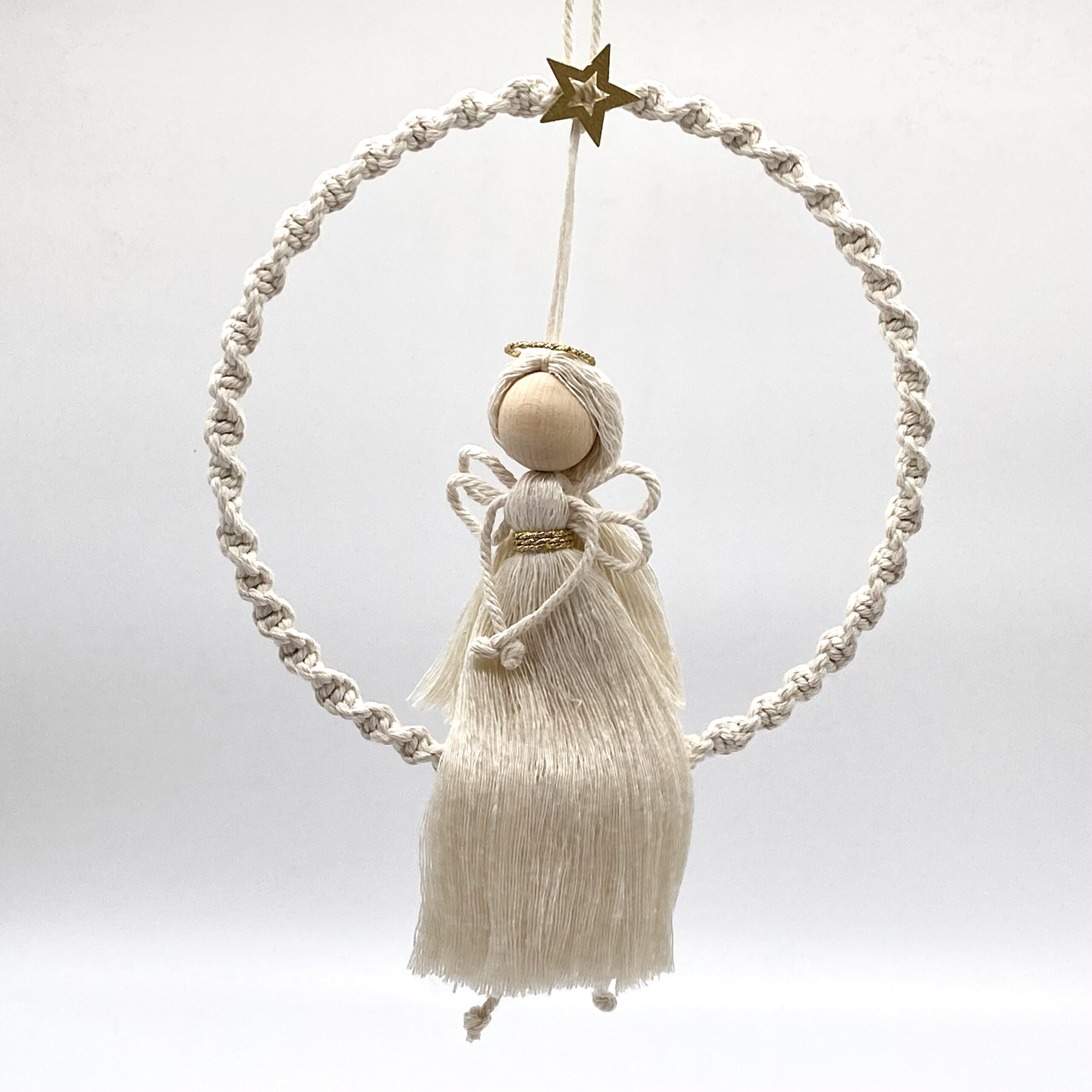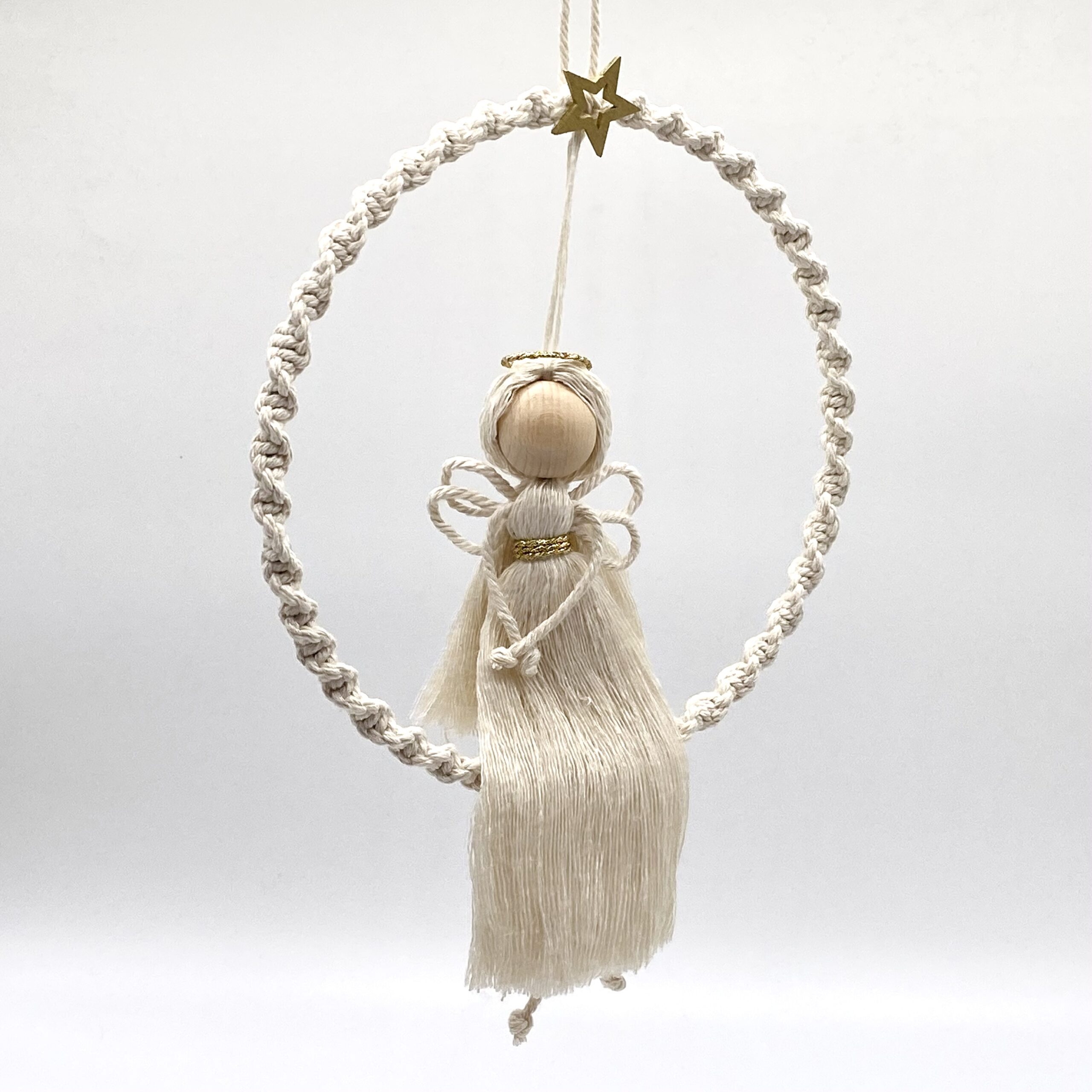 Maße: ca. ⌀ 21 cm; H (Figur & Kranz) ca. 29 cm; H (Figur, Kranz & Aufhängung) ca. 46 cm