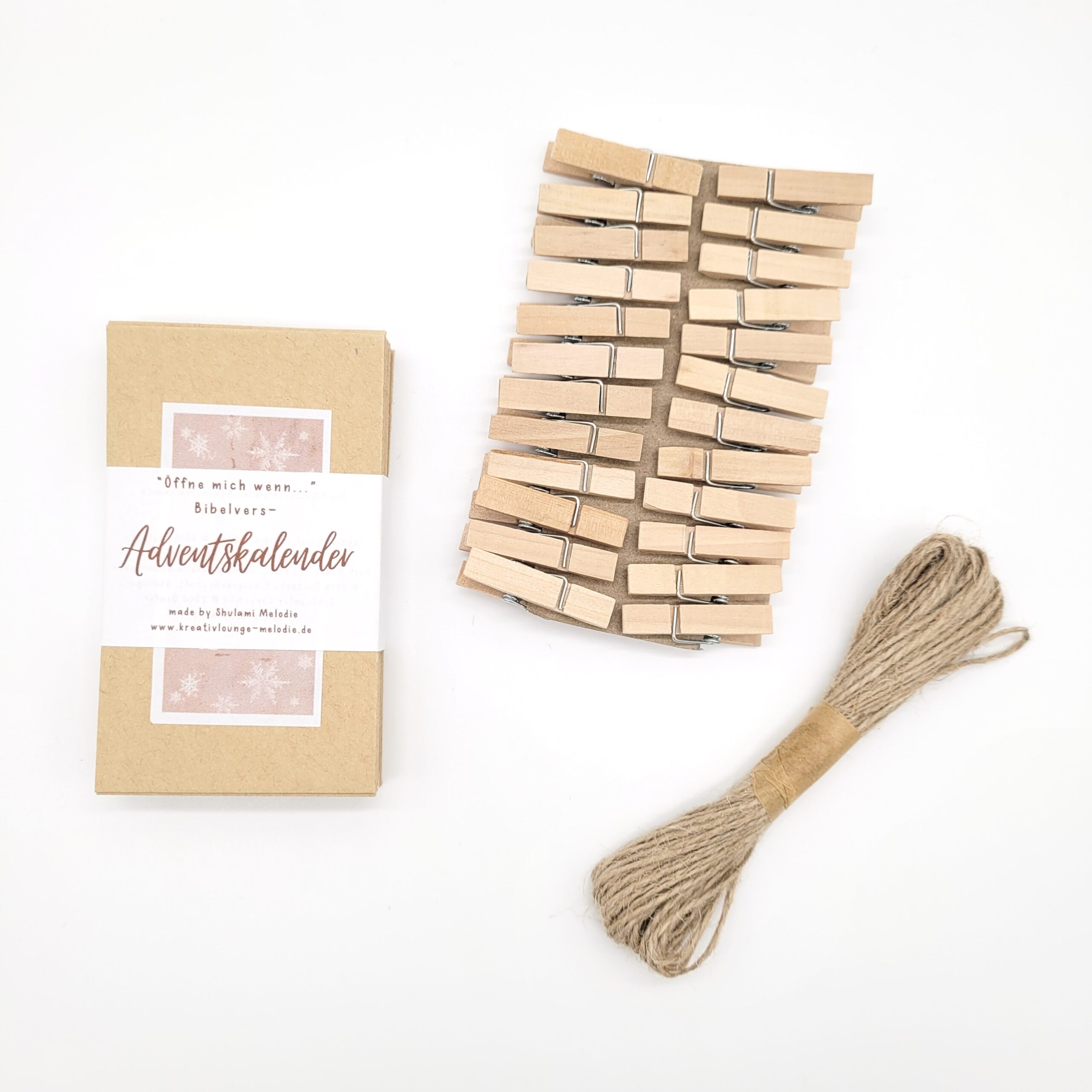 – Bibelvers-Adventskalender inkl. Material zum Aufhängen (ca. 2m Schnur & 24 Wäscheklammern)